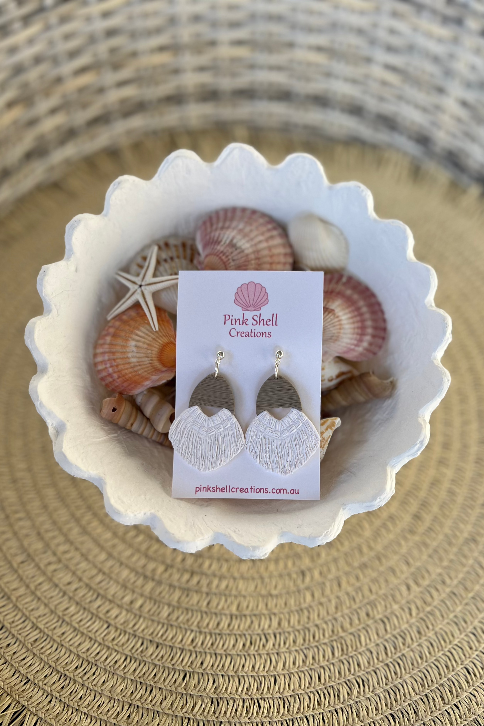 Handcrafted boho macramé dangle earrings in pristine white with natural wooden-look accents. These lightweight beauties feature hypoallergenic stainless steel ball posts, perfect for sensitive ears. Each pair brings a touch of earthy elegance to your everyday style.